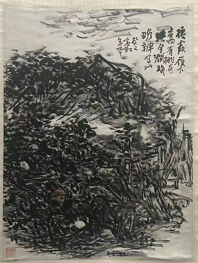 1954年黄宾虹在杭州灵隐飞来峰写生