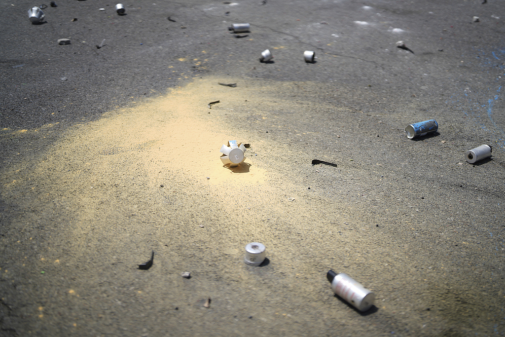 当地时间2025年6月7日,美国洛杉矶派拉蒙区,联邦移民局开展行动后,抗议活动现场出现用过的防暴弹。