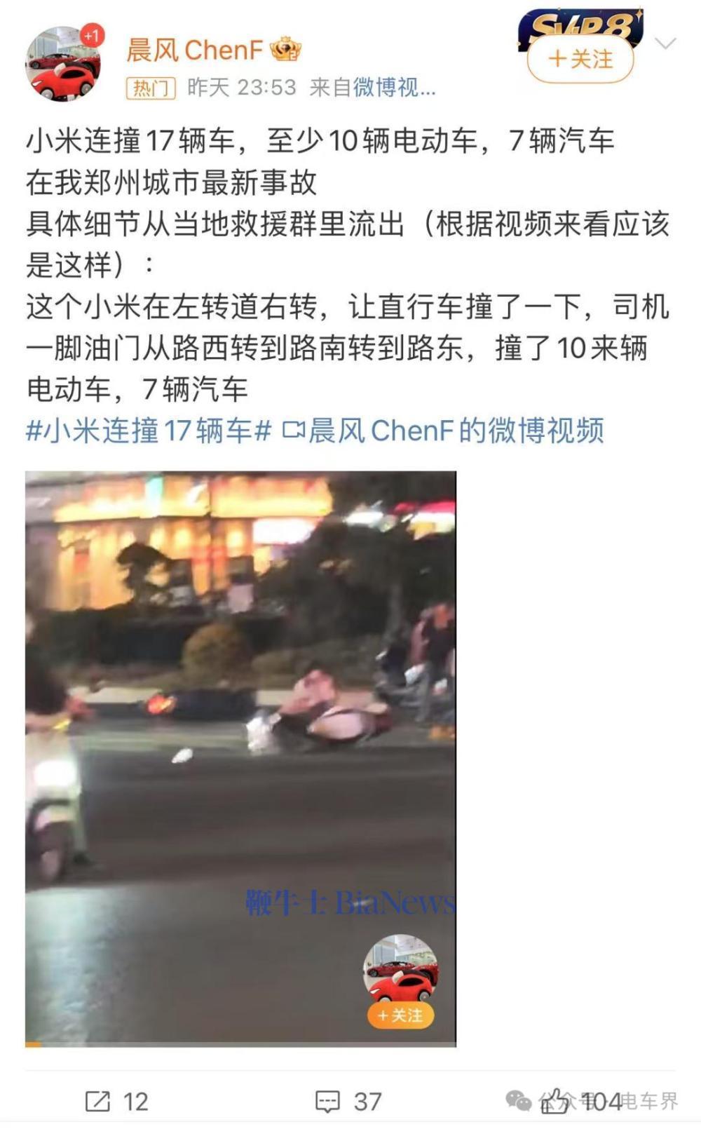 首页 > 学习 恐怖,曝郑州一小米SU7连撞17车 电车界 6 月 12 日消息昨天晚上一博主爆料,在郑州,一辆小米 SU7 连撞 17 辆车,至少 10 辆电动车,7 辆汽车。他表示,具体细节是从当地救援群里流出,小米在左转道右转,让直行车撞了一下,司机一脚油门从路西转到路南转到路东,撞了 10 来辆电动车,7 辆汽车。据该博主发布的视频显示,有多位被撞人员瘫坐在地上。这辆发生事故的小米 SU7,车头损坏严重,前机盖已严重变形。目前,尚不清楚此次事故造成的伤亡情况。(转载自:电车界)