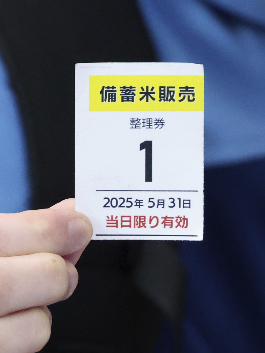 当地时间2025年5月31日,日本千叶县松岛市的一家商店需要凭票购买大米。