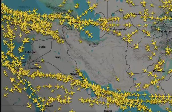 6 月 13 日凌晨,以色列对伊朗境内的核设施及军事目标发动 " 先发制人打击 "。随后,航空追踪网站 Flightradar24 发布的一段 21 秒中东地区航班动态延时视频在社交媒体上迅速传播。视频显示,在袭击发生后,伊朗及其邻国伊拉克领空内的航班迅速撤离,空域短时间内 " 一片干净 ",场面令人震撼。