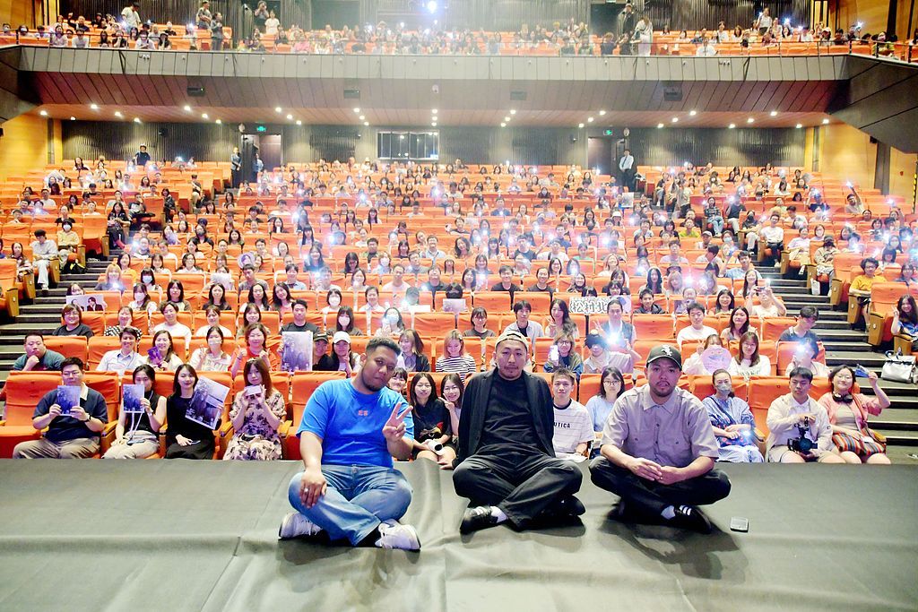 2024年上影节期间,三宅唱(中)与他经常合作的音乐创作组合Hi'Spec出席《黎明的一切》观众见面会。