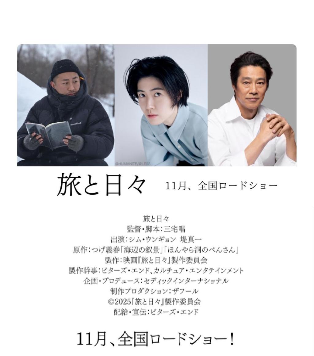 话虽如此,现在的三宅唱似乎已无须担心无片可拍。他的最新作品《旅途中的日子》即将于今年11月上映,由旅日韩国女演员沈恩京和日本男演员堤真一主演。更值得一提的是,影片取材自享誉世界的GARO系漫画家柘植义春的两部短篇,此前竹中直人、山田勇男、山下敦宏、片山慎三都曾将义春的作品搬上银幕,这次三宅唱与他能擦出怎样的火花,很值得期待。