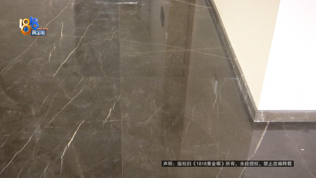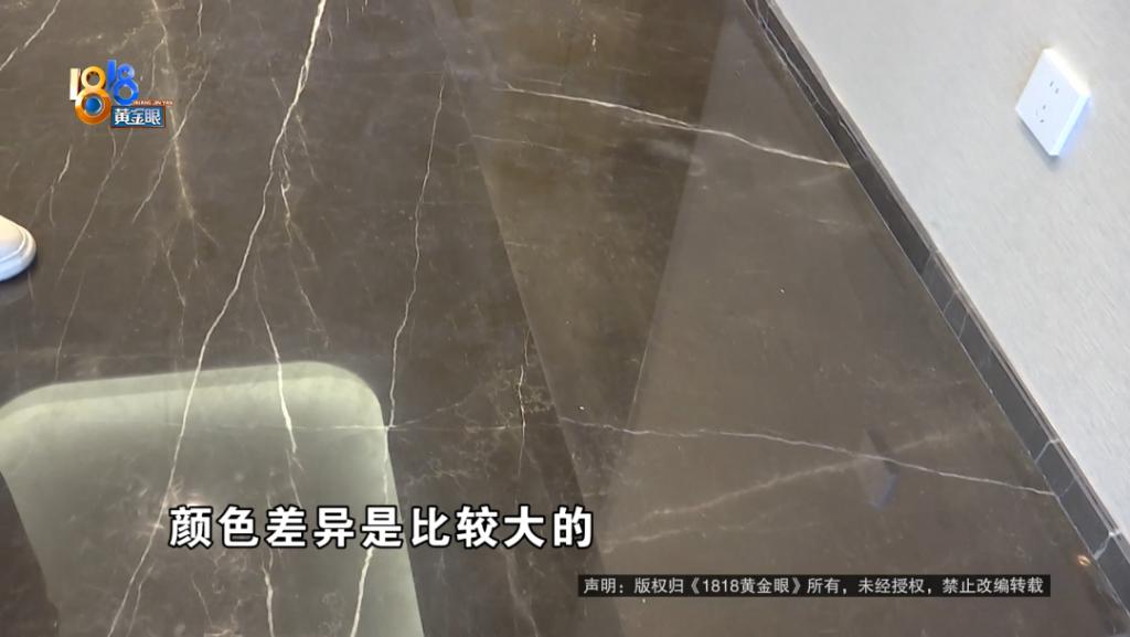 方先生:这一片的石材跟里面的这一排的石材颜色差异是比较大的,色差很大,那开发商的解释,第一个是天然的石材本来就不能保证每一处颜色都是一样的,第二个是觉得下面有地暖层,有保温层,所以他觉得去维修也容易造成破损,所以他就不给我们维修了,也不处理了。