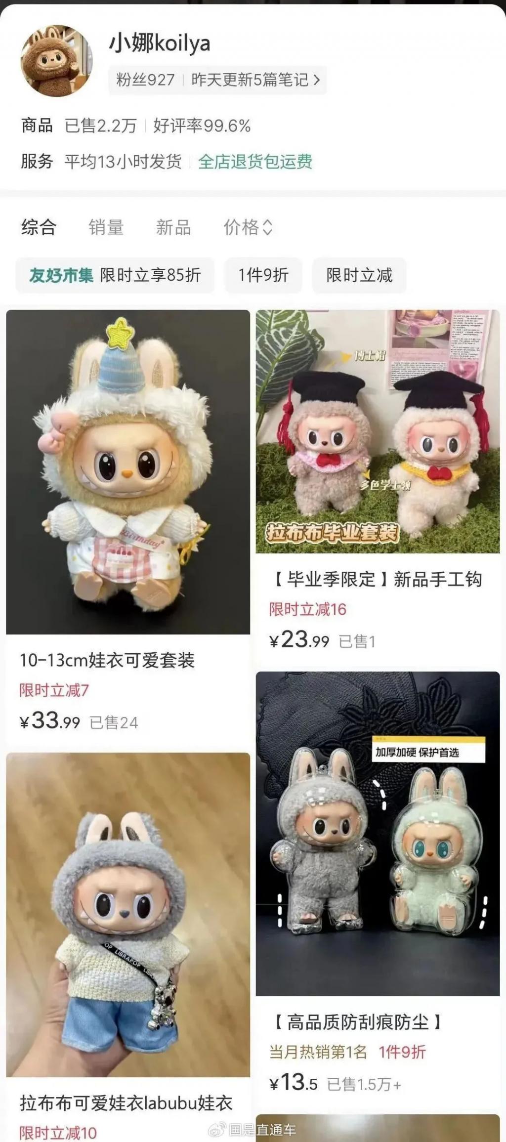 有小红书娃衣手作博主表示,Labubu 的娃衣市场让她惊讶;" 以前是一个‘娃’基本要五六千,大家觉得花五六百给它买衣服很正常。现在一个 Labubu 才 99 元,也会有人花两三百给它买一件衣服,甚至很多人一次性买多件,花一千多。"