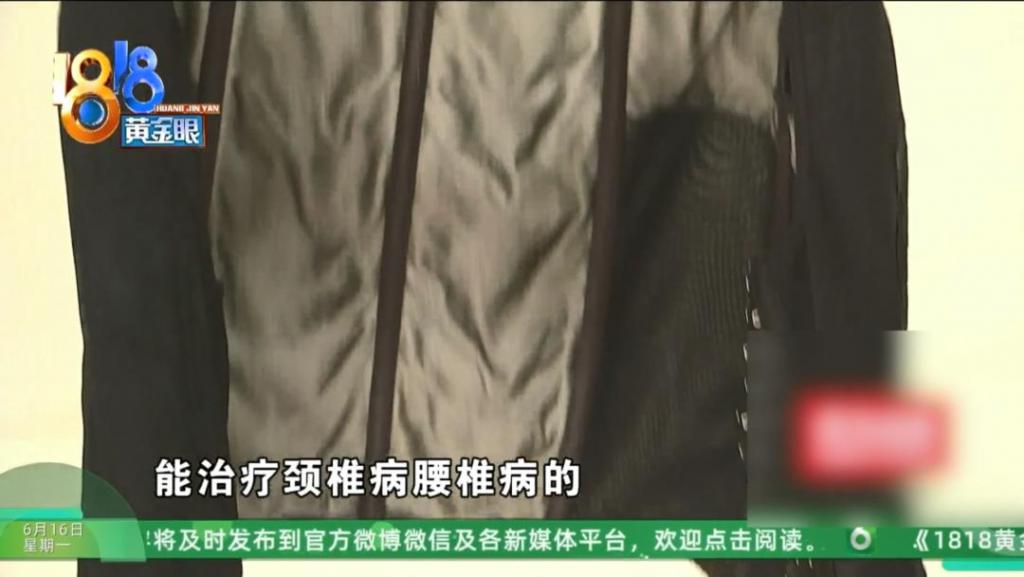 马女士:到了那边那边的销售一听说我妈是什么颈椎腰椎不好,就推荐买这件腰背夹,说能治疗颈椎病腰椎病,能排毒排湿祛寒。她口头说的,口头宣传的。