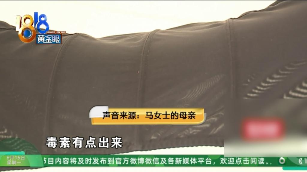 马女士的母亲认为因为毒素排出来了,所以衣服内里有些区域的颜色,才会变深。