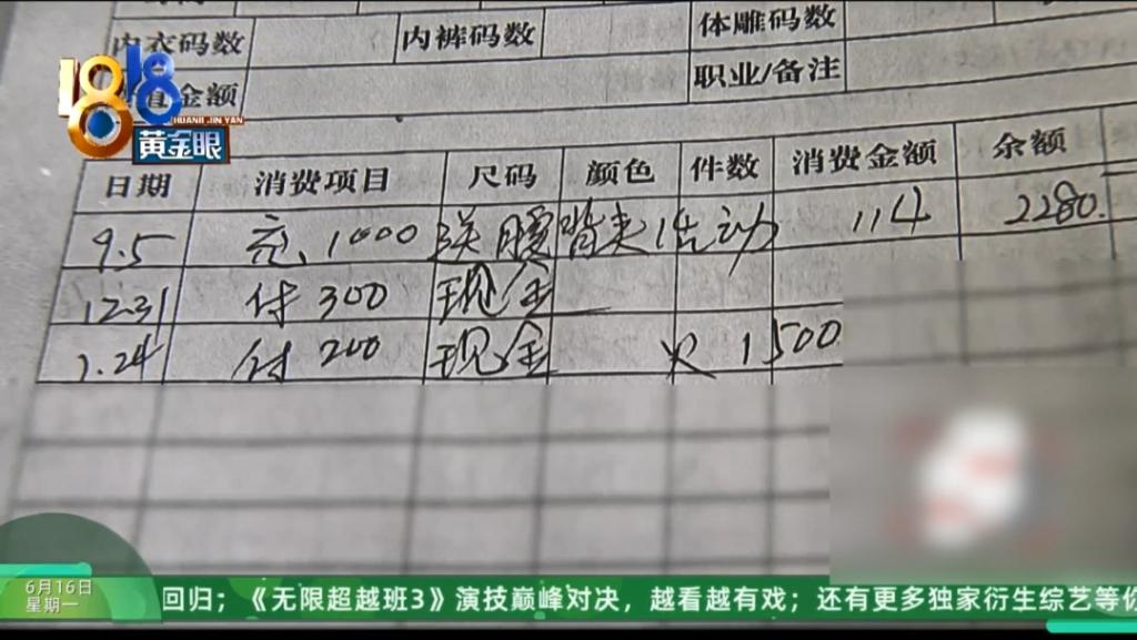 马女士表示当时门店让母亲充值 3000 元可以拿一件腰背夹回去,老人身边没带这么多钱就先交了 1000 块现金,后来又付过两次钱实际总共付了 1500 块,剩下的还要再去店里付款。