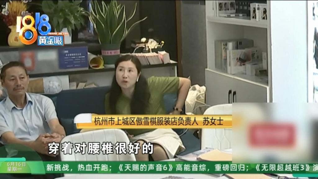 杭州市上城区傲雪棋服装店负责人 苏女士:这个腰背夹,穿着对腰椎很好的。