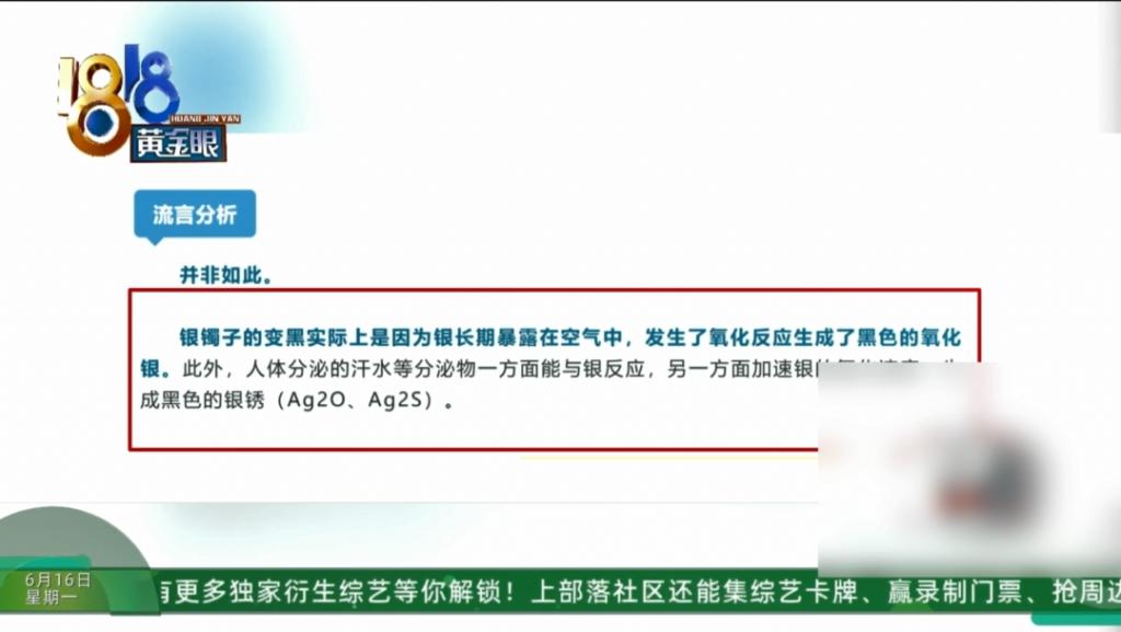 记者查询了资料银制品的变黑是因为银长期暴露在空气中发生氧化反应生成了黑色的氧化银,此外人体分泌的汗水等分泌物一方面能与银反应,另一方面加速了银的氧化速度生成黑色的银锈,这并不是什么吸收了身体的毒素。