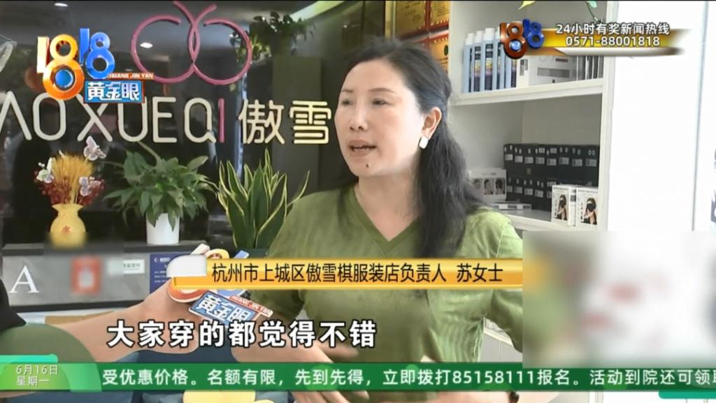 杭州市上城区傲雪棋服装店负责人 苏女士:因为我们这里的买的很多人,大家穿的都觉得不错。