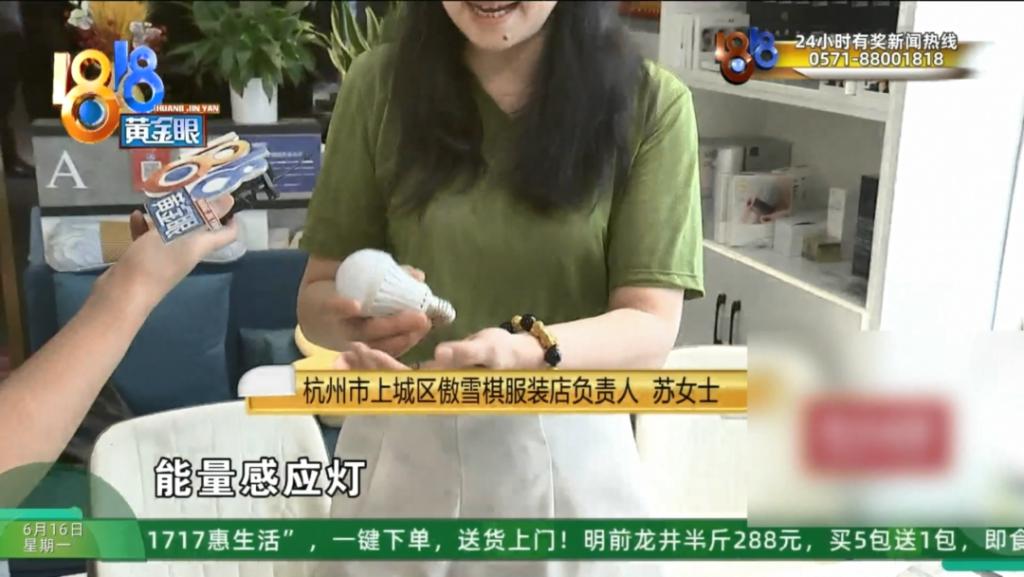 杭州市上城区傲雪棋服装店负责人 苏女士:你问这个,那你去问生产这个灯泡的。