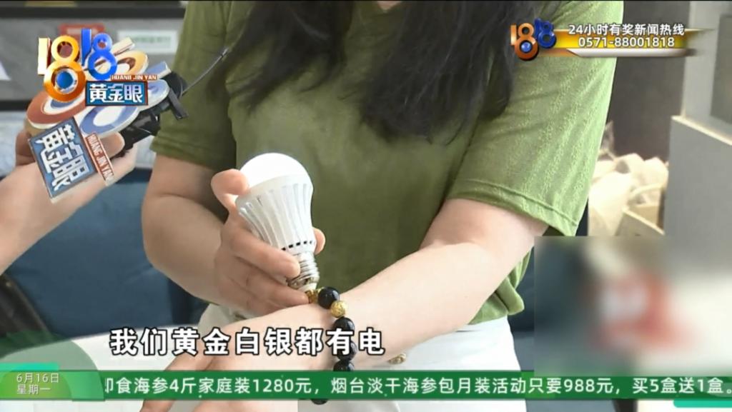 杭州市上城区傲雪棋服装店负责人 苏女士:那你看这个(手串)它就没有电。这个是网上随便买。