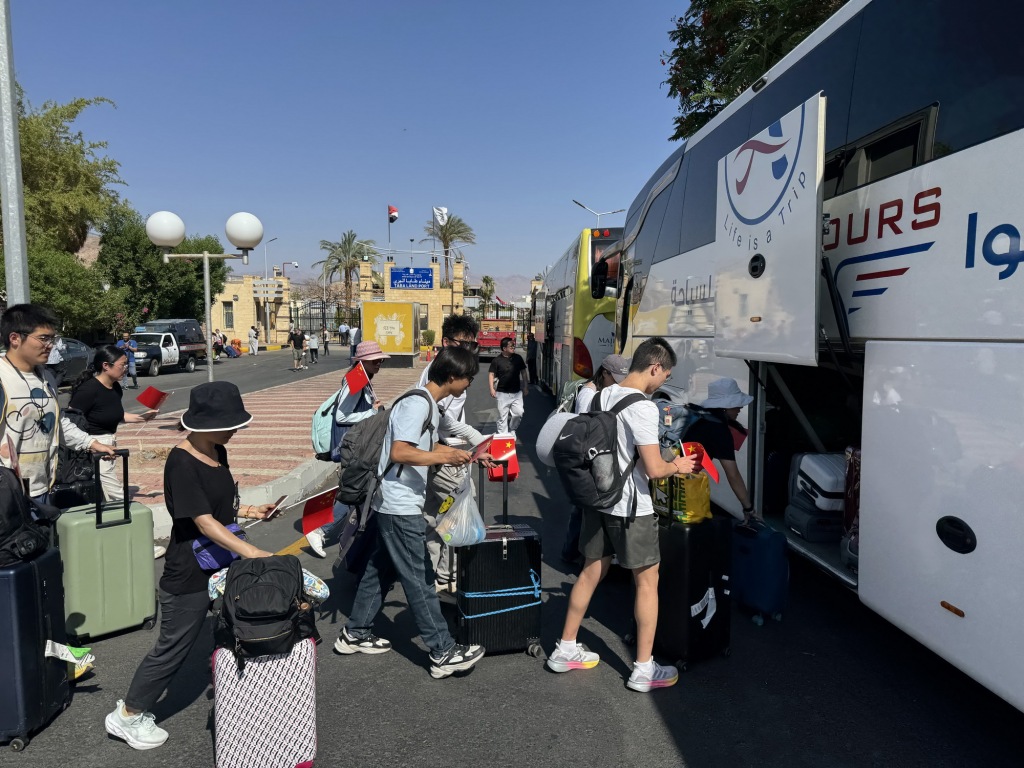 耶路撒冷希伯来大学博士后孙雪表示,从耶路撒冷到塔巴边境口岸大约花了4小时,中国驻以色列使馆工作人员全程陪同,并给大家提供了应急食品。“在塔巴口岸办理入境手续过程中,中国驻埃及使馆工作人员和志愿者们热心帮助和协调,非常感谢他们。”