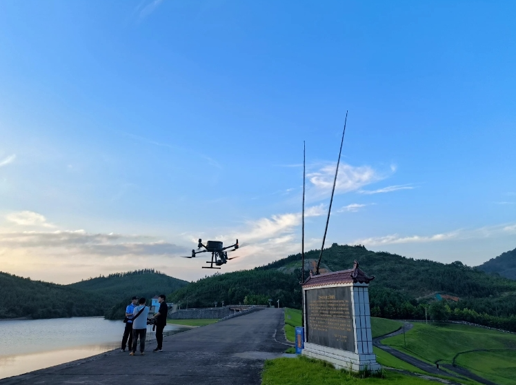 分宜县公安局警用无人机小分队在洞村乡石牛滩水库巡查。