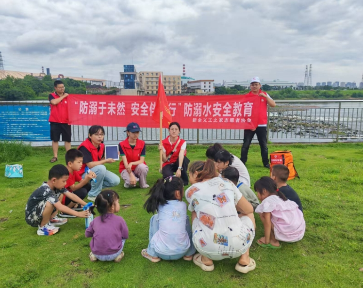 新余义工之家志愿者给孩子们讲防溺水知识。