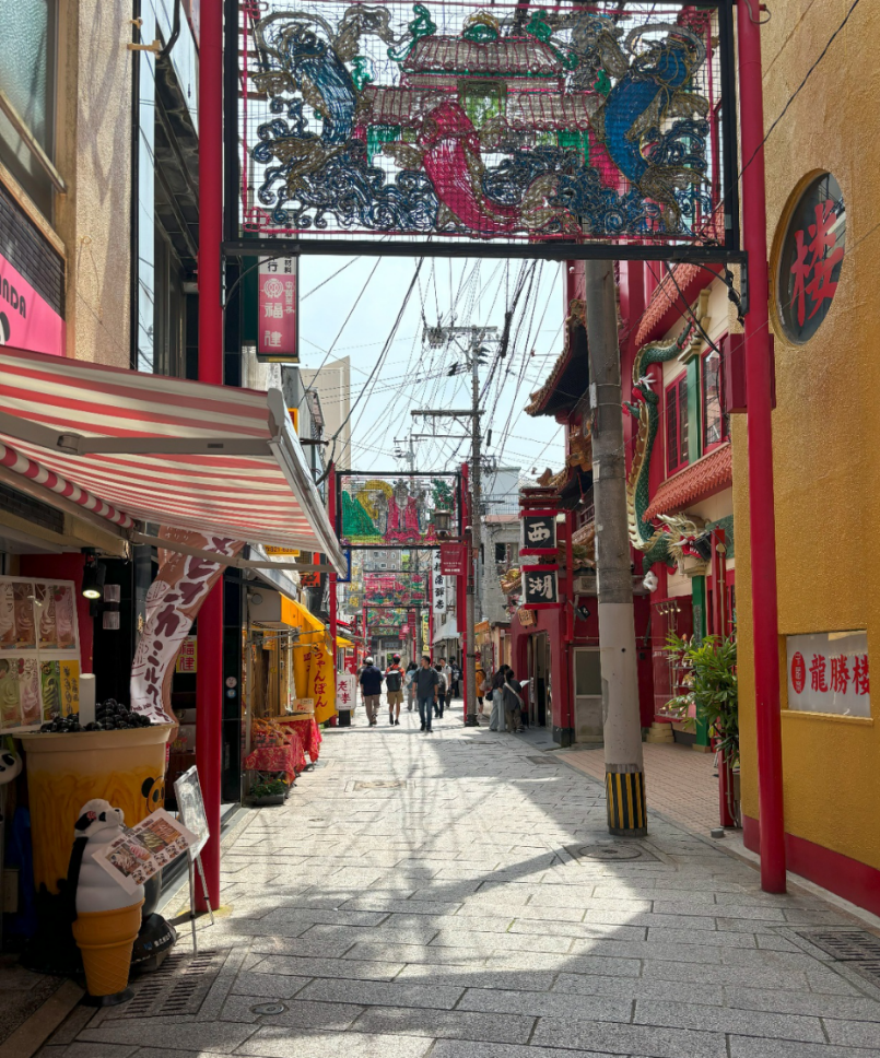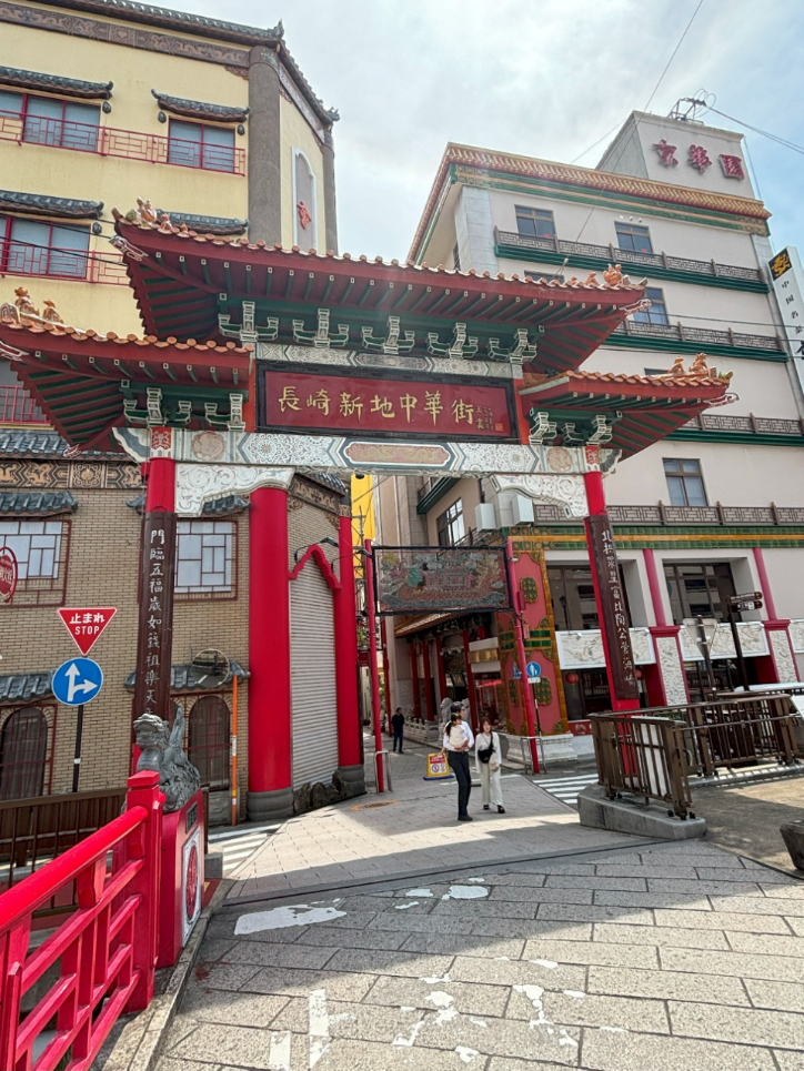 那天从出岛出来,移步西南,几百米之外,就是今天的新地中华街,大致是一个四方形的街区,东西南北,各有一个门,分别寓意青龙、白虎、朱雀、玄武,北边的玄武门,算是正门(一般以南边的朱雀门为正门吧),一条有点海水味的小河上,筑有新地桥(桥的栏杆漆成了中国风的朱红色,日本多为橘红色),桥的南侧,有一门楼,黄瓦赤柱,色彩艳艳的,上面几个端正的“长崎新地中华街”的字,是1986年建造时,由当时的中日友协名誉会长王震(后担任了国家副主席)书写的。日本所谓的中华街,差不多就是中国美食街的代名词了,现在与横滨的中华街、神户的南京町并列为日本三大中华街,横滨和神户,是后来开埠的,在对外交流上,长崎倒是长兄了。新地的中华街,主街只是一条巷子而已,汇聚了诸如王鹤、京华园、会乐园、江山楼等二三十家中餐馆,也是艳艳的招牌,大一些的店,门口的两个石狮子,几乎也成了标配。我到的时候,已是下午三点多,据说平日门市的生意一直不坏,中国菜的魅力,一般人很难抗拒。