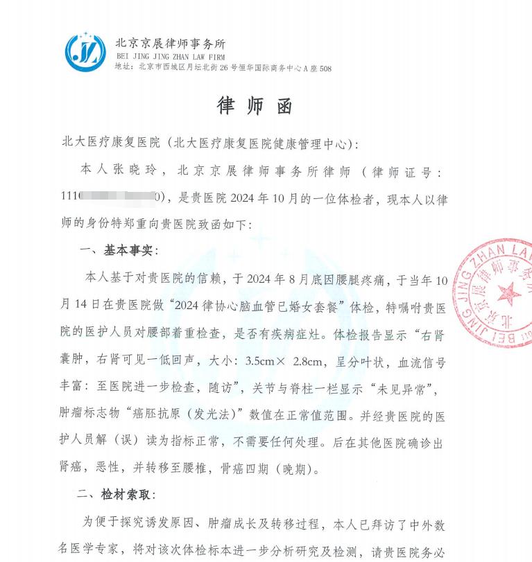 体检10年未提示风险,结果查出癌症晚期,女律师质疑爱康国宾“假体检”:肾癌和骨转移都不是一朝一夕形成的