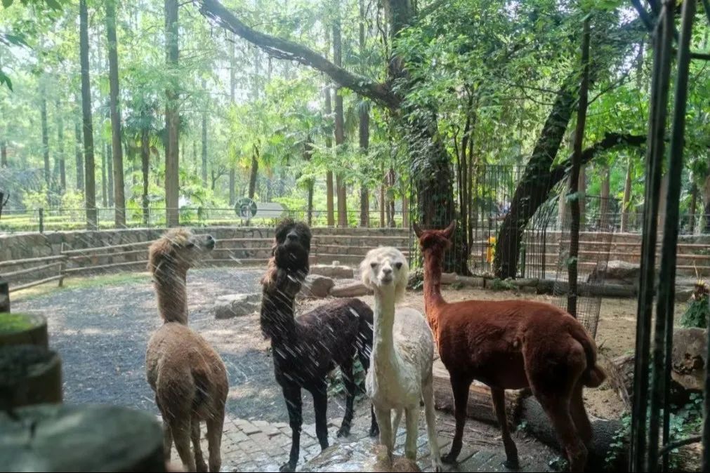 对于更喜欢玩水的动物们,饲养员提供“人工降雨”服务,手持水管为它们冲凉解暑。羊驼们就享受得眯起眼睛,甚至排着队求“搓澡”,湿漉漉的样子活像行走的棉花糖。饮食方面,饲养员为动物们准备了夏日专属“清凉套餐”,香甜多汁的西瓜是夏日消暑主角,动物日常饲料中也会增加葡萄、火龙果等多汁水果,以满足补水需求。除此之外,饲养员还会制作更凉爽的夏日特色冰品,如牛奶冰、水果冰和蔬菜冰等,依据动物身体情况适量投喂。