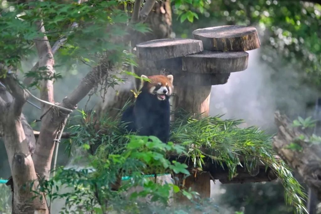 园方表示,根据往年降温设施的使用经验,今年对展区的喷淋、喷雾系统提前进行了维护、更新和升级。犀鸟、涉禽、进入式鸟园、孔雀等场馆进行了施工,新增了喷雾系统。喷雾开启时,水雾缭绕,宛若仙境。