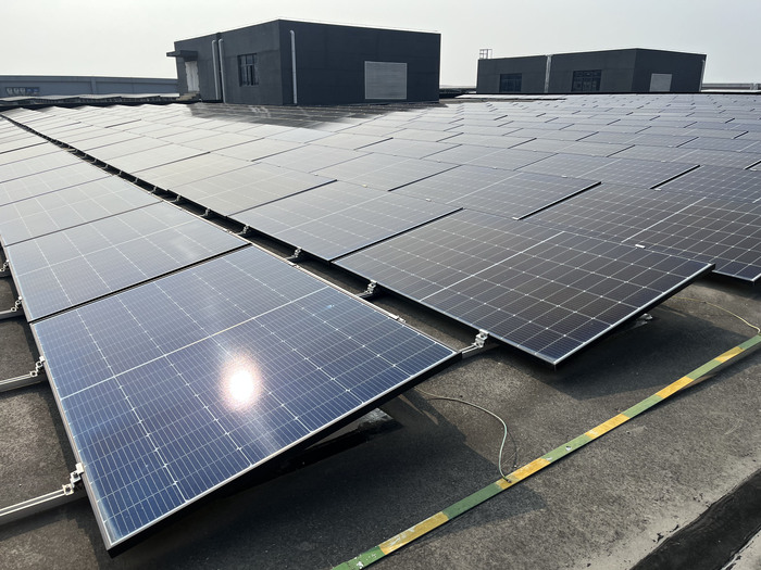 生产车间顶部安装的组件,采用了“巧客立”快装支架系统。其与常规组件方案不同,采用了更低组件、贴地安装的设计。