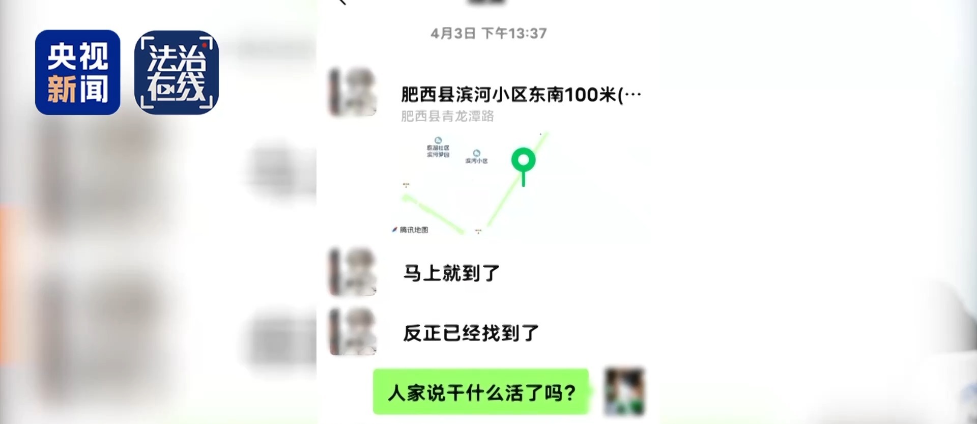 胡一啸父亲 胡宗兵:他发的是一个路边的位置,既不是工厂,也不是住宿,就是一个路边的位置。他妈妈就过去看了,那时候发现没有住在那边,也没有厂,所以当时就在合肥那边报警了。