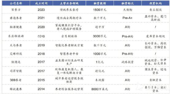 中国银发经济领域部分企业融资事件盘点 来源:灼炽咨询,《银发经济蓝皮书》
