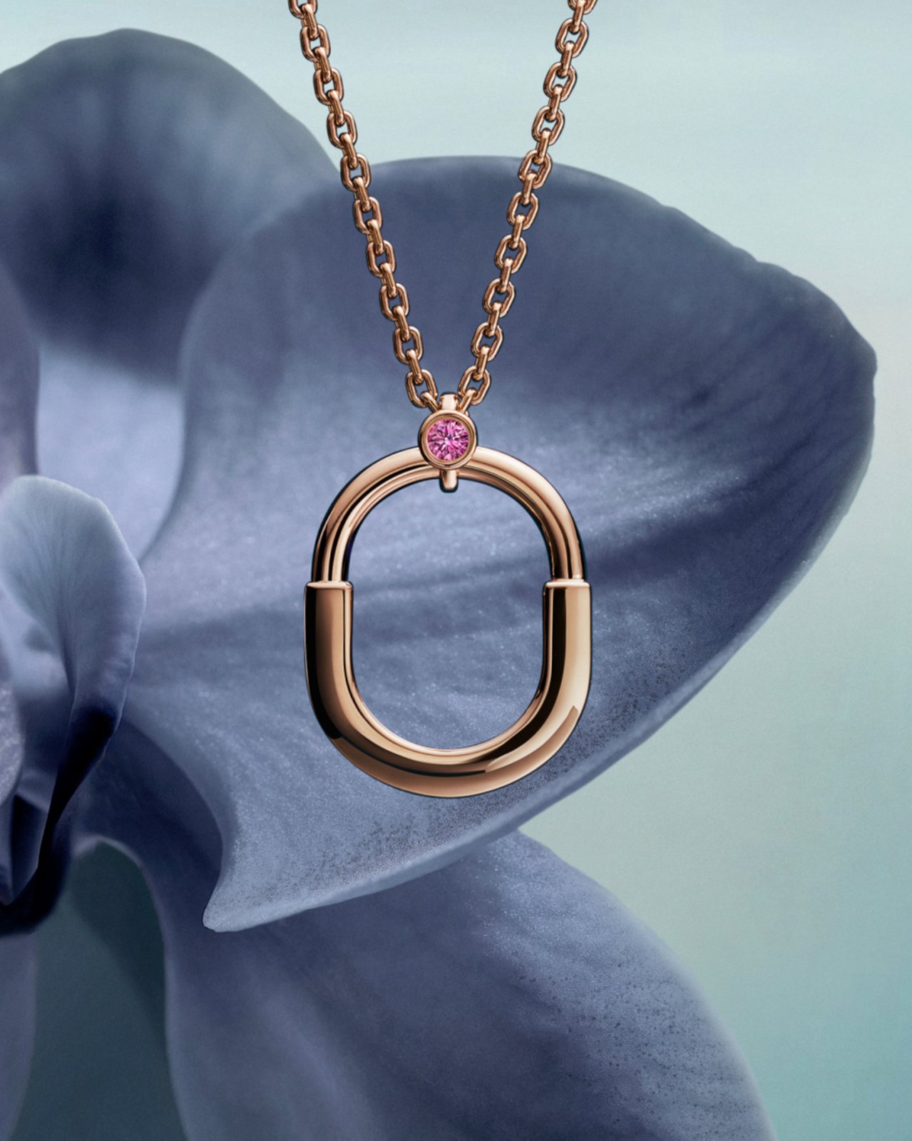 蒂芙尼Lock系列是以1883年一位丈夫赠与爱妻的挂锁胸针为灵感进行的现代化再创作。此次新作以一颗粉色蓝宝石作为点睛之笔,为经典设计再添一抹含蓄浪漫,诠释爱的恒久守护。