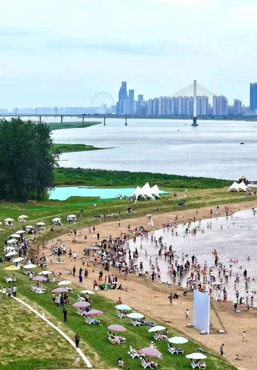 在这里,孩子们在浅水区嬉戏打闹,欢声笑语不绝于耳;大人们则在水中畅游,享受着水流带来的惬意。泳场开放时不仅配备专业救生团队全程保障安全,还打造了休闲娱乐区,提供遮阳伞、躺椅等设施,并引入了美食集市、沙滩运动等多种文旅业态。据统计,自“两滩七湾”内河泳场开放以来,人流量相当于每天开9场万人露天演唱会,成为南昌夏季最热门的休闲场所之一。