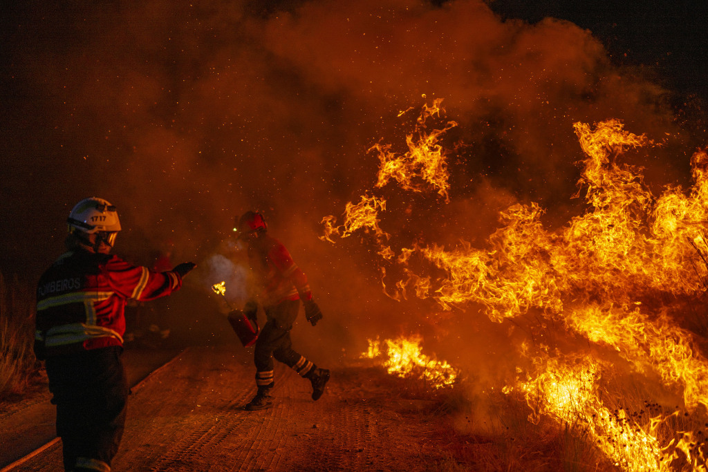 7月29日,葡萄牙佩纳马科尔,消防员和葡萄牙国民警卫队成员扑灭森林火灾。