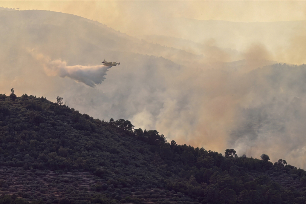 7月30日,西班牙阿维拉,一架消防飞机试图扑灭野火。
