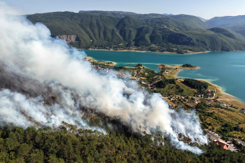 7月24日,波黑普罗佐尔-拉马地区,拉姆斯科湖和拉马村附近,森林火灾导致浓烟滚滚。