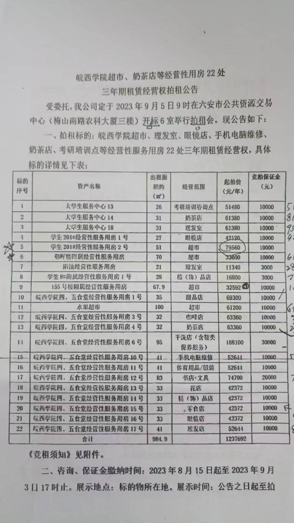 记者从皖西学院官网查询发现,一则发布于 2023 年 8 月 16 日的《皖西学院超市、奶茶店等经营性用房 22 处三年期租赁经营权拍租交易公告》显示,陈某代拍下的经营服务用房经营范围为 " 超市 "。 " 我们私下约定商铺由陈某来经营,我只做些烟酒生意。但当时拍租公告中有约定,校内不准经营烟酒。为此,陈某便想到了一个变通的办法。" 许先生对记者说。