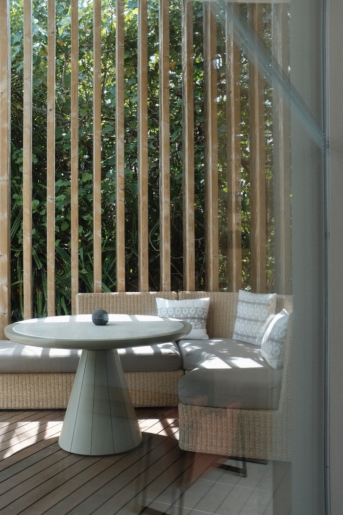 该酒店共约 100 间一居室与多居室别墅,包括环形设计的水上别墅、海滩别墅,以及最大的三居室“Ritz Carlton Estate”。这里的酒店管家统称为 Aris Meeha,当地语境中意为“国王的副手”之意,可以为住客提供全天预约、导览及接送等服务。当住客乘坐快艇抵达时,会有专门的迎宾仪式,员工会吹响传说中的“sangu”海螺号角以示欢迎;每天夜晚也会有马代传统的Boduberu鼓乐+火舞仪式。