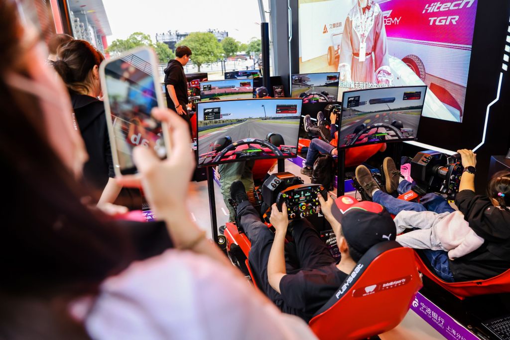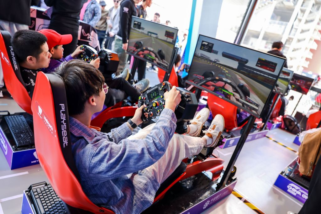 此外还有面向全民参与的飞行圈挑战赛,只需在现场排队报名参赛,即可驾驶虚拟F1赛车在“上海国际赛车场”等赛道飞驰。同时现场还设有圈速天梯榜单,当日圈速榜前5名将获取赛事精美奖品。