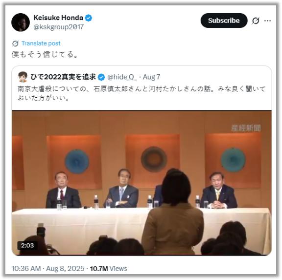 本田圭佑为南京大屠杀道歉,被日本网友狂骂