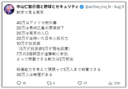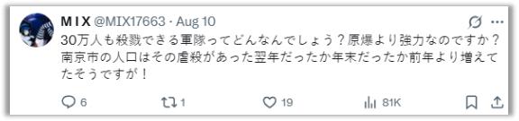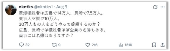 " 可中国却说南京大屠杀死难者有 30 万人,难道进入南京的侵华日军比原子弹还厉害吗?"