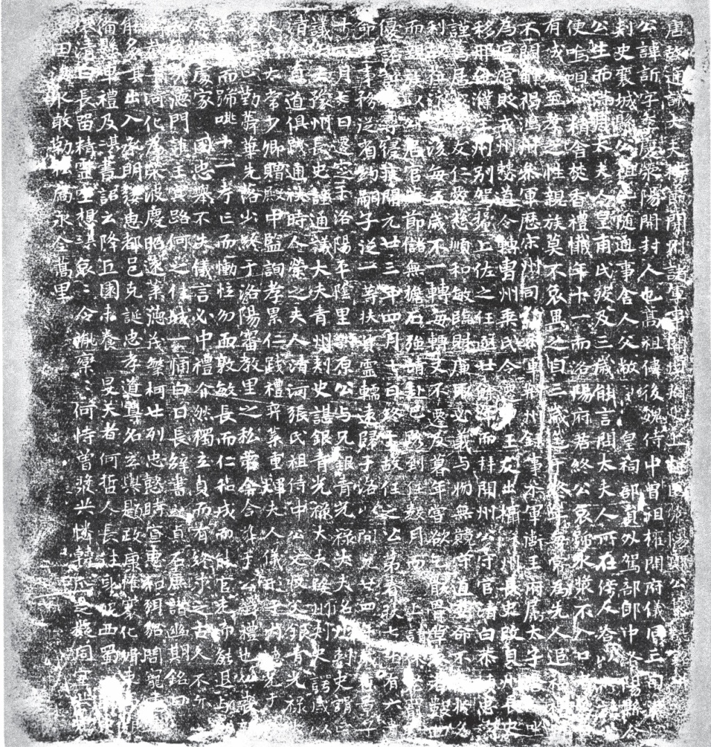 君讳佋,字子穆,清河东武城人也。曾祖虔威,随谒者台大夫、仪同三司;祖文收,皇朝率更令、太常少卿;父询□(孝),皇朝太常少卿、加银青光禄大夫、太仆少卿、太常卿,赠殿中监,咸代昭其烈。君聪明神纵,岐嶷生知,百行无违,率艺咸举。始汾阴主簿,状萃举,转左金吾卫仓曹,仍直崇文□(馆)学士。亲累,出许州襄城县丞。敕还资调选右卫骑曹。亲累,又左黄州司户。恩敕不须左降,特依旧任。丁家忧。起复岐王文学,特恩追入,侍奉宸旒。授朝散大夫、秘书省著作郎。未值龙颜也,虽有不羁之行,超代之才,徒充冗散,亟疲迁谪。及其一顾也,则沃心昌论,前□嘉谋。干将虎吼以腾天,騄骥虬鸣而俸日。方将竭股肱之思,赞盐梅之理。九命未及,三泉俄逝。粤以开元廿年九月十五日,寝疾于河南府河南县永豊(丰)里私第,春秋六十。圣情轸悼,赠棣州诸军事使持节棣州刺史。以开元廿一年二月十六日迁祔京兆府万年县灞陵乡白鹿原,礼也。生称其达,何必故乡。没不忘贤,式铭新垄。其词曰: