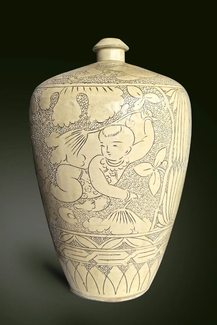 宋《白地黑彩绘持莲童子纹梅瓶平面图》局部