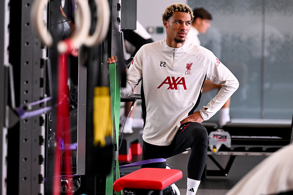 利物浦新援埃基蒂克进行赛前力量训练。