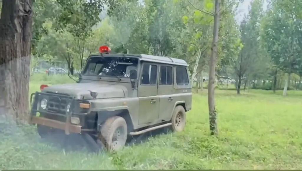 视频截图,工作人员驱车在一旁