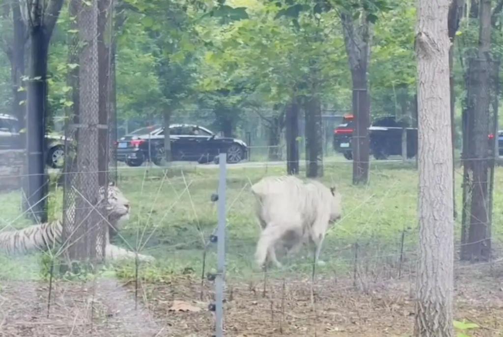 8 月 31 日,有网友发布视频记录河北秦皇岛野生动物园猛兽区惊险一幕:只见两车停在猛兽区,车上下来多人,疑似发生争执。两只白虎就在一旁看着,目测距离他们仅几米远。