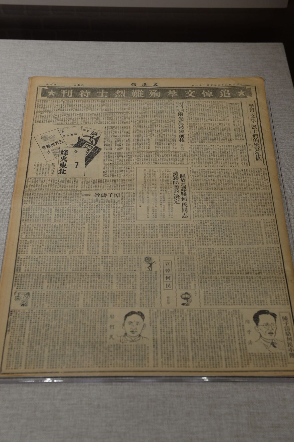 刊登雨花英烈事迹的《文汇报》原件