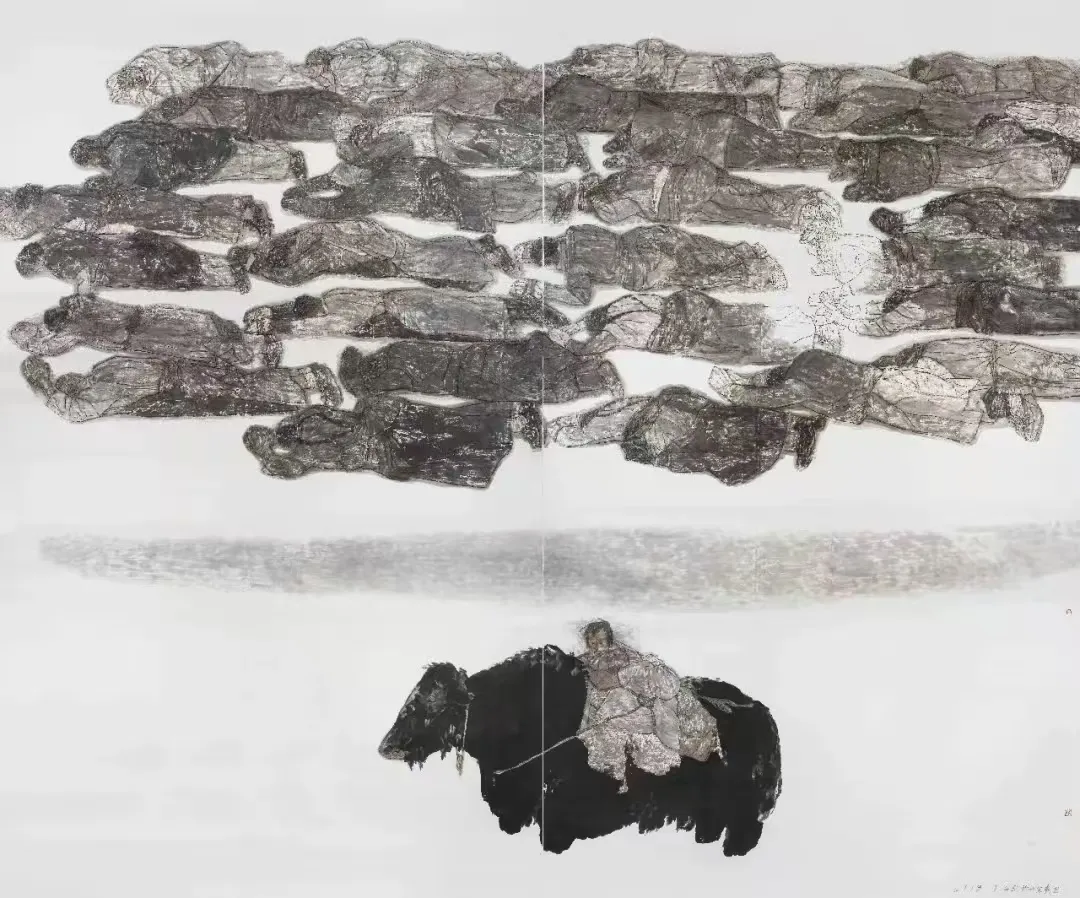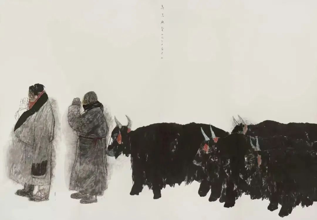 生于1959年的知名画家袁武曾任北京画院执行院长,以其厚重的笔墨在中国人物画领域独树一帜,通过深耕大尺幅人物形象的笔墨技法,尤其对农民与牛、西藏人物的绘写,将写实传统与当代写意精神相融合,有着高天厚土间的质朴与悲悯,画如其人,见到袁武本人,给人的感觉同样是质朴与憨厚。