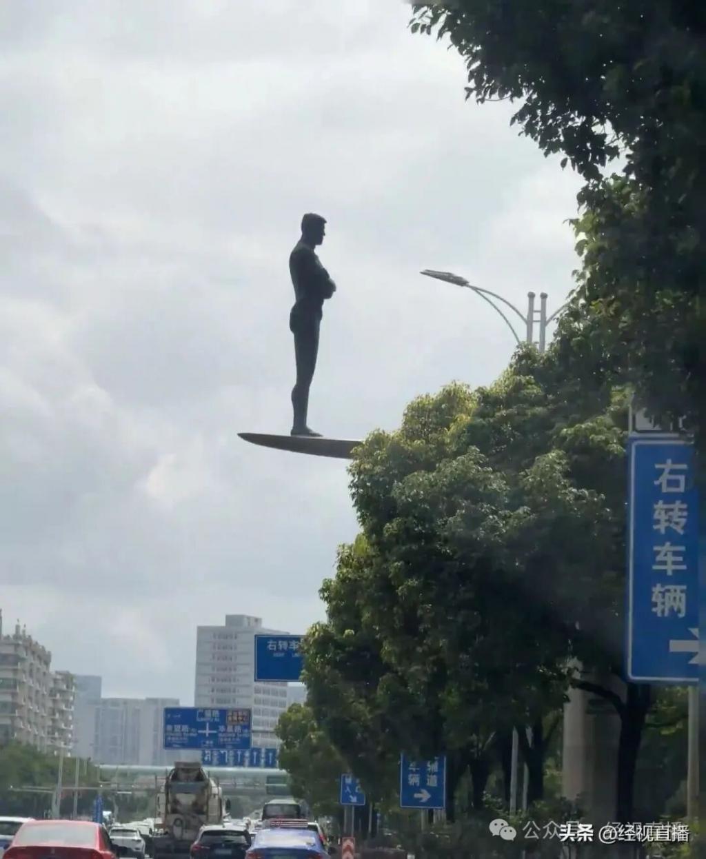 近日,网友吐槽昆明街边有座 " 抽象 " 天平雕像:高近树顶,一端是抱臂男子,一端是蚂蚱,驾车视角看像人准备跳水,网友难猜意图。9 月 1 日,昆明市滇池度假区工作人员称,该雕像是广福路系列雕塑之一,依云南特色设计,代表人与自然关系。