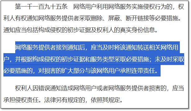 事实是,平台只是服务提供商,而非内容生产商。根据《民法典》的相关规定,他们的核心义务是 " 通知 - 删除 ",只需要对 " 明知或应知 " 的侵权内容承担连带责任。