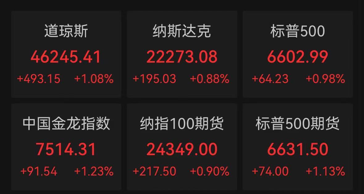 周五,美国三大股指全线收涨,家得宝涨超3%,默克涨近3%,领涨道指。Wind截图截至收盘,道指涨1....