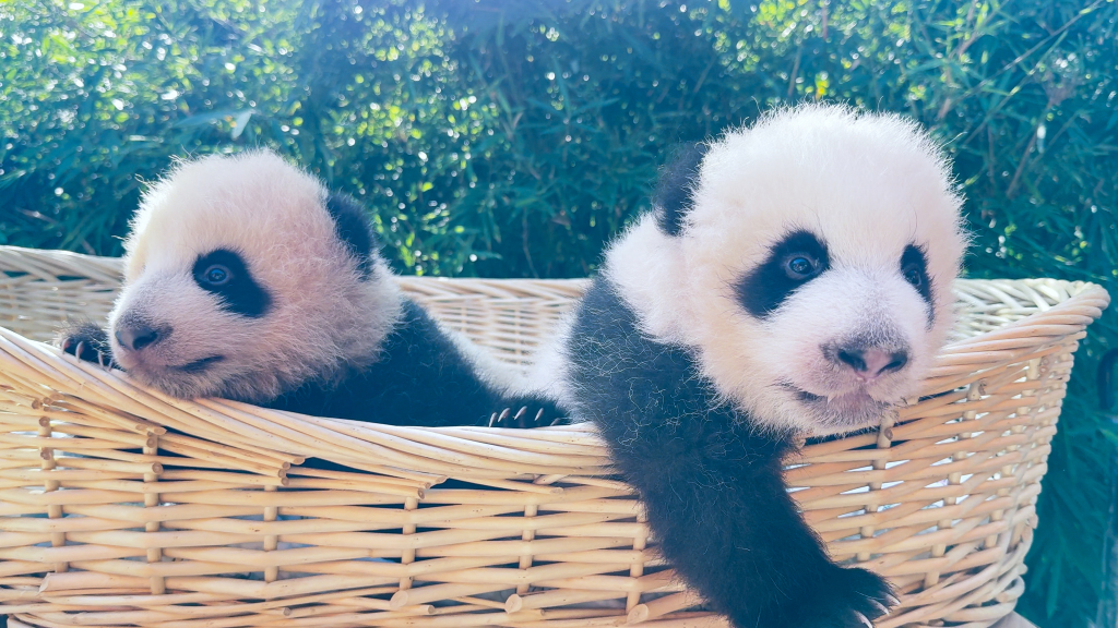 与妈妈“芊金”一字相承,这对大熊猫龙凤胎取名“芊然”与“芊逸”学习
