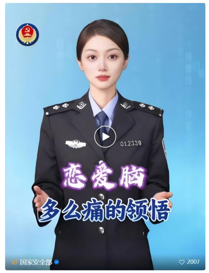 01最近国家安全部公众号发了一篇文章,叫:《恋爱脑,多么痛的领悟》。里面报道了一名女性泄露国家秘密的...