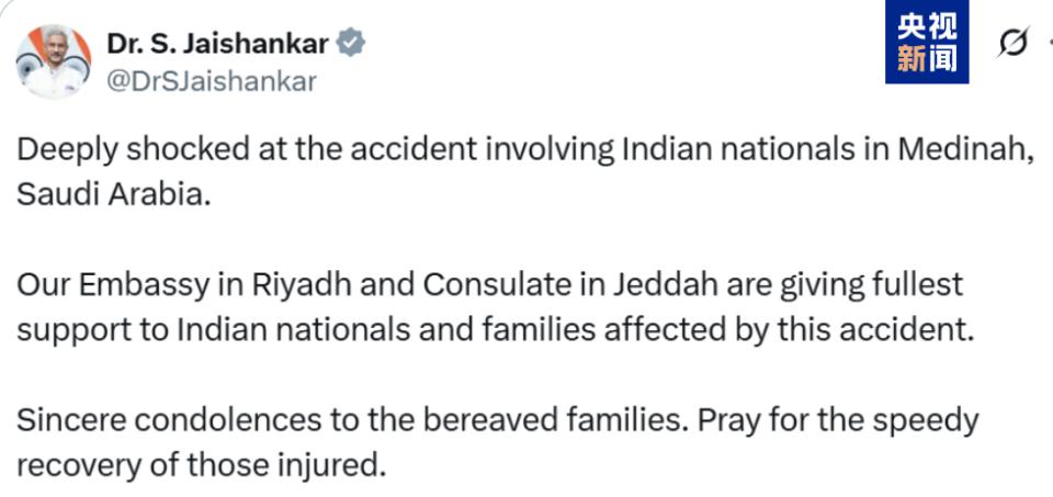 当地时间17日,总台记者获悉,一辆载有印度朝觐者的巴士在沙特麦加开往麦地那的途中与一辆油罐车相撞,造...